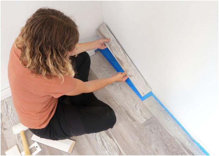 When you reach the end of a row or need to fit around obstacles, you may need to cut the planks. Utilize tools like a floor cutting tool, a circular saw, or a jigsaw for precision cuts. Start new rows with the offcuts from previous rows to reduce waste and enhance the floor pattern’s natural look. Continue with the angle-and-snap technique for each row, ensuring each plank is firmly locked in place.