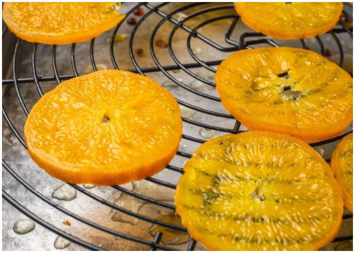 Transfer the wire rack into your preheated oven. Dehydrate the fruits for approximately 6 hours, turning them every 30 minutes to ensure they dry evenly. The end result should be fruits that are completely dried, characterized by a leathery texture and diminished size. Once finished, remove the rack from the oven and let the fruits cool to room temperature. This cooling period helps to further crispen the fruits.