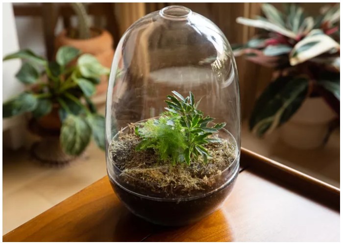 - Terrarium plants: Choose small plants with similar water and light needs.