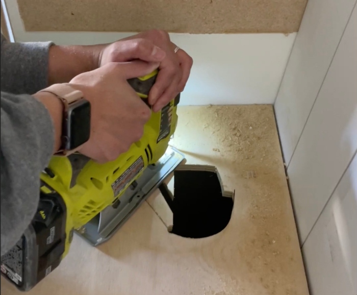 - Prepare the Upper Frame: Install a horizontal 2×4 block between the studs at the top of the cutout to serve as a frame for the laundry chute door.